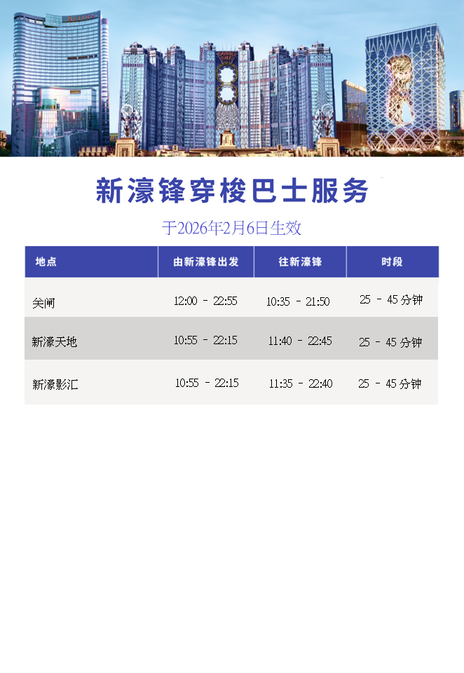 欢迎到访新濠影汇,您可享有每天5小时免费泊车优惠,无需消费,请即莅临,开展您的巨星体验之旅。